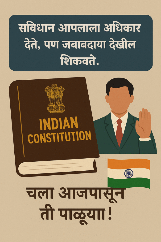 संविधान आपल्याला अधिकार देते, पण जबाबदाऱ्या देखील शिकवते. चला आजपासून ती पाळूया!